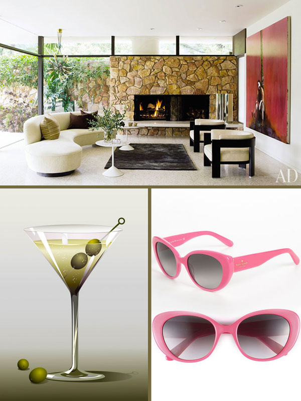 living room photo by Roger Davis/Architectural Digest – martini by Desislava Terzieva – awesome sunnies by kate spade